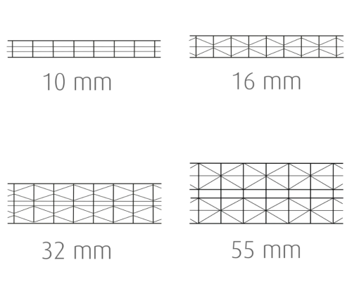 - 16 mm har bredd 1050 mm – finns i OPAL/KLAR/RØYK